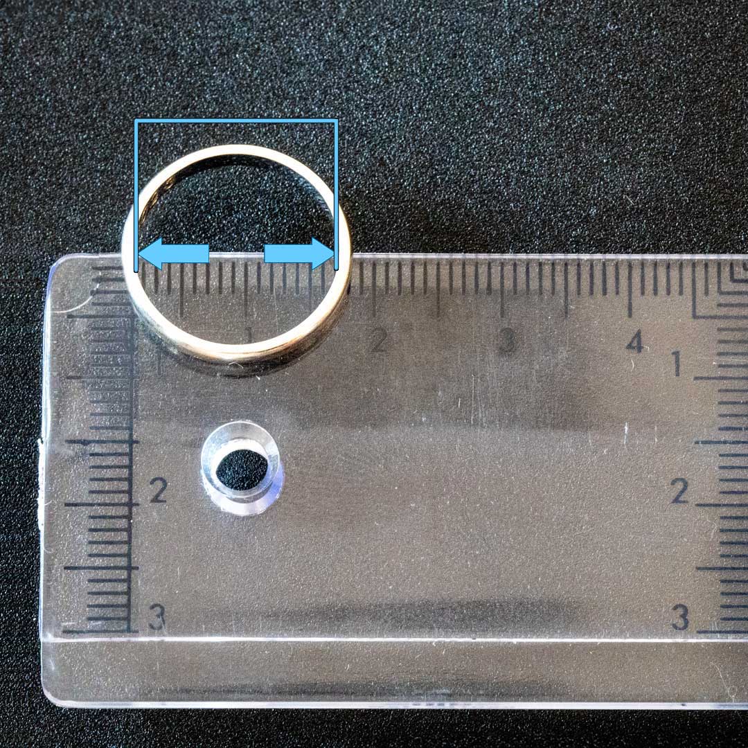 Usa una regla para medir el diámetro del anillo de un extremo al otro.