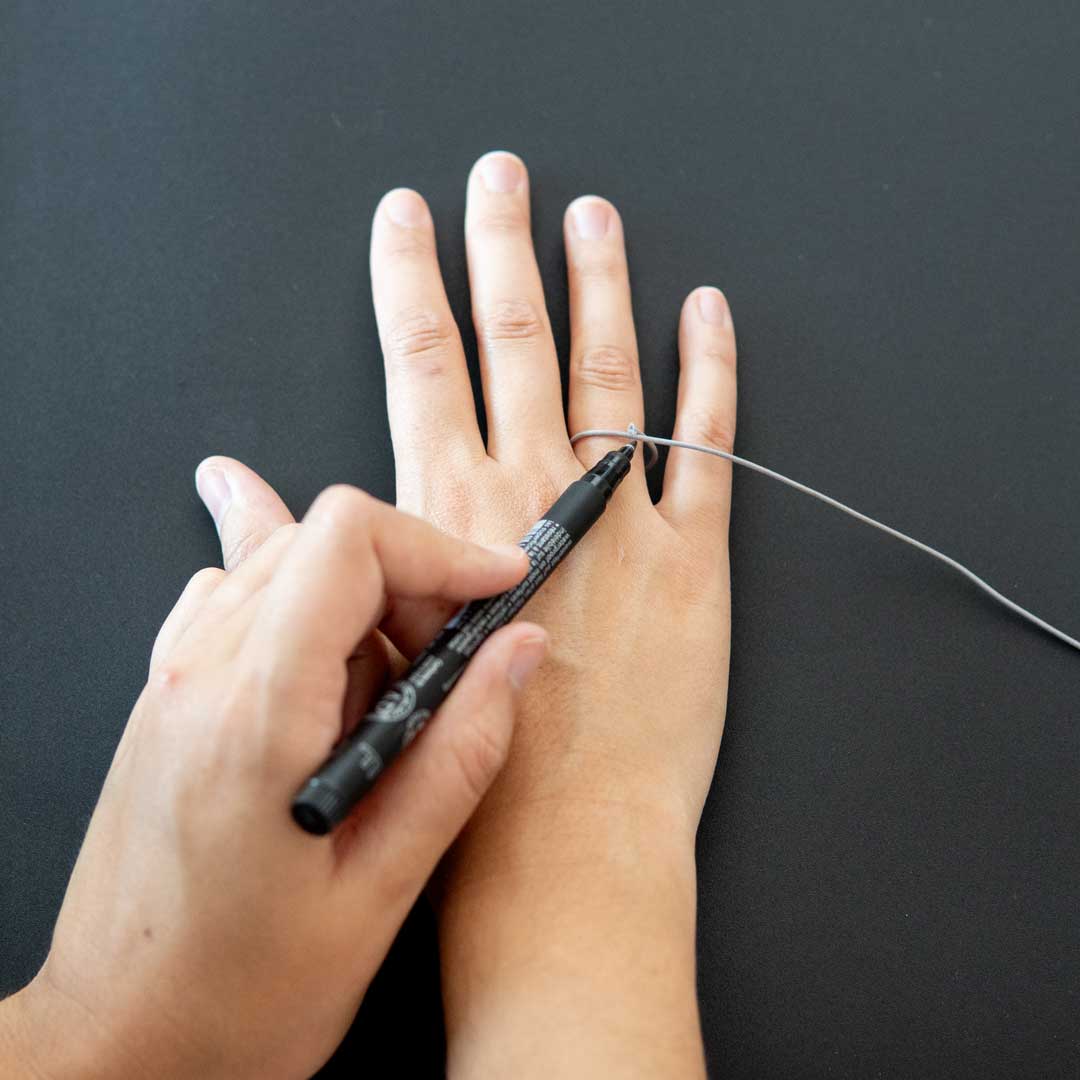 Envuelve una cuerda suavemente alrededor del dedo que elijas y con un bolígrafo para marcar el punto donde se unen los extremos de la cuerda.