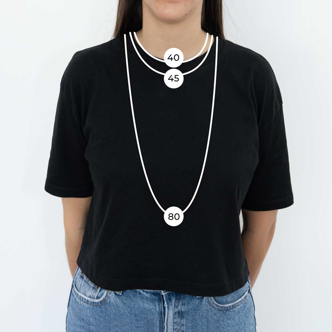 En raivejoyas.com, ofrecemos tres tamaños de collares para que encuentres el que mejor se adapta a tu estilo y comodidad: 40 cm, 45 cm y 80 cm. A continuación, te brindamos algunos consejos para elegir el tamaño perfecto para ti: