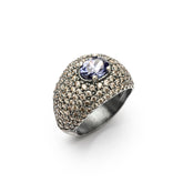 Fuerza y elegancia convergen para crear este anillo. Una pieza única repleta de circonitas y piedras semipreciosas con una piedra central de 6x8mm en el centro como protagonista que acaba de darle el toque único a la pieza. Un anillo para lucir con tus mejores looks de la temporada.