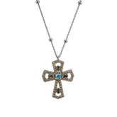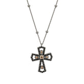 La cruz, símbolo eterno de misterio y fuerza, se transforma en joya para desafiar el tiempo. Una cadena de plata con bolas con baño de rutenio de la que cuelga una cruz con una piedra semipreciosa de 4mm en el centro y repleta de circonitas a su alrededor. Un colgante perfecto para combinar y elevar cualquier look.