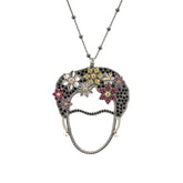 Frida, icono de arte y libertad, convertida en joya que celebra la fuerza de lo único. Una cadena de plata de bolas con baño de rutenio de la que cuelga la silueta de la cara de Frida Kahlo con el pelo lleno de flores y repleta de circonitas y espinelas que le dan un toque único. Una pieza única que aportará un toque mágico a cualquier look.