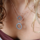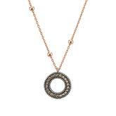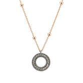 Elegante, sutil y súper combinable, así es este colgante. Una cadena de plata con baño de oro rosa y bolas de la que cuelga un aro ondulado de circonitas que le da a la pieza un toque de luz único. Perfecto para combinar con tus favoritos y elevar todos tus looks de la temporada.