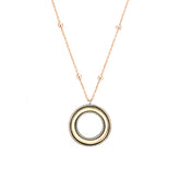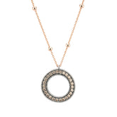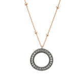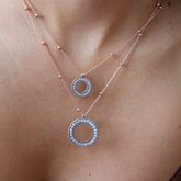 Elegante, sutil y súper combinable, así es este colgante. Una cadena de plata con baño de oro rosa y bolas de la que cuelga un aro ondulado de circonitas o de bronce que le da a la pieza un toque de luz único. Perfecto para combinar con tus favoritos y elevar todos tus looks de la temporada.
