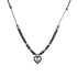 Súper combinable y con mucho carisma. Así es este colgante tipo choker. Un colgante de nylon negro con bolas plata de hematites y obsidianas del que cuelga una silueta de corazón con espinelas negras y una calavera en relieve en el centro. Como un primer beso, así es nuestra Lovers Collection. Descúbrela.