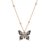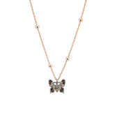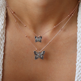 Déjate sorprender por el elegante aleteo de la mariposa. Así es este colgante. Una cadena de plata con baño oro rosa y bolas de la que cuelga una elegante mariposa repleta de circonitas y piedras semipreciosas que te cautivará. Una pieza que te enamorará por su delicadeza, su carisma y su elegancia.