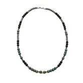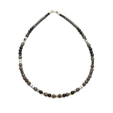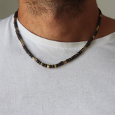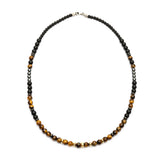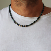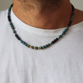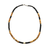 Versátil y con mucho carisma. Así es este collar. Un collar elástico de bolas de diferentes piedras semipreciosas y bolas bañadas en oro amarillo de 7mm que te atrapará por sus detalles. Descubre nuestros diseños elásticos para él y ella que combinan comodidad y carácter en cada detalle. Combínalas.