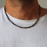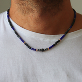 Versátil y con mucho carisma. Así es este collar. Un collar elástico de bolas de diferentes piedras semipreciosas de 4mm que te atrapará por sus detalles y su carácter desenfadado pero muy atrevido. Descubre nuestros diseños elásticos para él y ella que combinan comodidad y carácter en cada detalle. Combínalas.