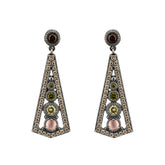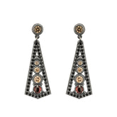 La cruz, símbolo eterno de misterio y fuerza, se transforma en joya para desafiar el tiempo. Unos pendientes de botón con una circonita de los que cuelga una silueta triangular repleta de circonitas y con piedras semipreciosas en su interior. Unos pendientes perfectos para combinar y elevar cualquier look.