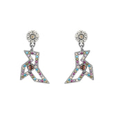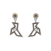 Como la grulla de papel japonesa, esta joya encierra un deseo de paz, amor y prosperidad. Unos pendientes de botón repletos de circonitas de los que cuelga la silueta de una pajarita de plata repleta de circonitas y una piedra semipreciosa en el centro que acaba de darle un toque único a la pieza.