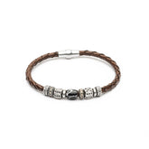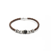 Entre el recuerdo y la eternidad, la Catrina se alza como joya de identidad y poder. Una pulsera de cuero marrón trenzado de 4mm con calaveras, entrepiezas de plata llenas de detalles, circonitas engastadas y piedras semipreciosas y hechas con resina marmolada. Escoge tu favorita y combínala para elevar tus looks.