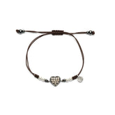 Súper combinable y muy romántica, así es esta pulsera. Una pulsera de nylon marrón con bolas de plata de 3mm bañadas en oro rosa y perlas con un corazón de pavé de circonitas en el centro como protagonista. Como un primer beso, así es nuestra Lovers Collection. Descúbrela.
