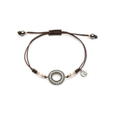 Elegante, sutil y súper combinable, así es esta pulsera. Una pulsera de nylon con bolas de plata bañadas en oro rosa y perlas con un aro ondulada en el centro como protagonista repleto de circonitas. Una pulsera perfecta para combinar y darle un toque único a cualquier look de la temporada.