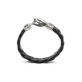 Pulsera Serpiente Plata y Cuero Negro